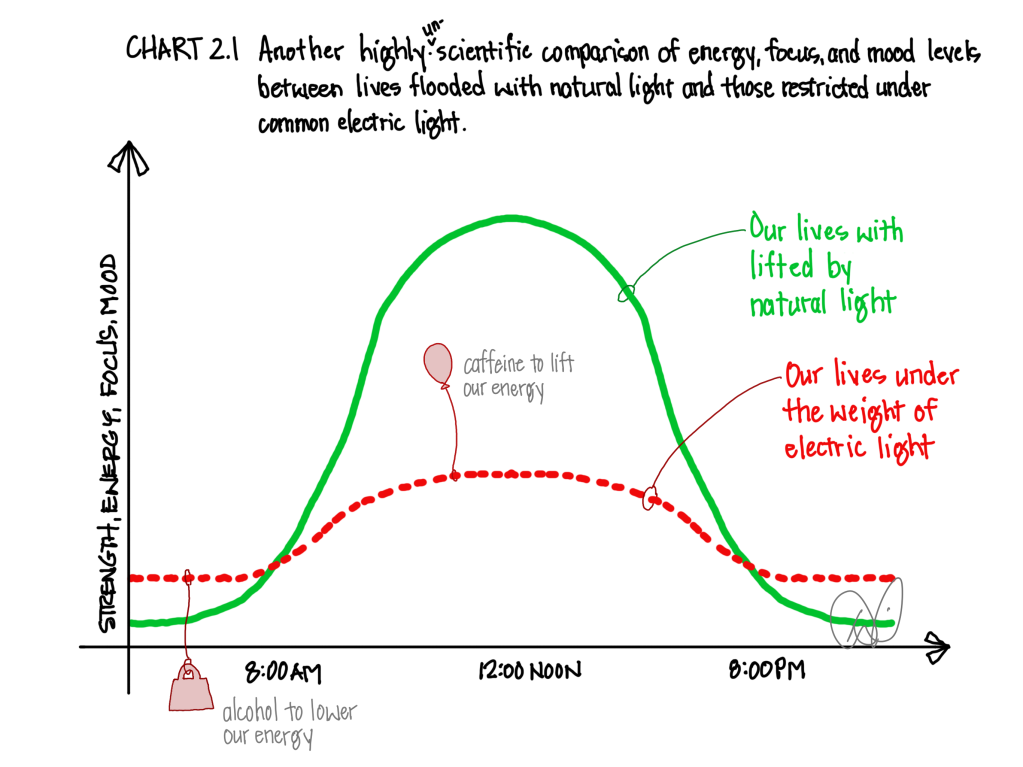 Ugh. Circadian rhythm is getting dangerously close to techno-babble, and I promised to stay away from confusing terminology and concepts. But circadian rhythm- the natural daily cycle of our body’s functions- is key to human wellbeing and is triggered and regulated naturally by light. So let’s call it, at least temporarily, our Natural Clock.