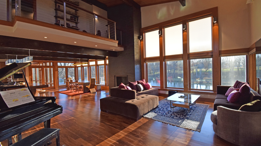 Sometimes a cove light is not possible and window coverings might interfere with the previous solution. In this project, our designers added wall sconces above the patio doors to push light down to the floor (while staying out of the Glare Zone) and to push light upwards into the Comfort Zone.